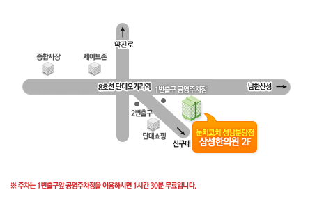 | ÁöÇÏö 8È£¼± ´Ü´ë¿À°Å¸®¿ª 1¹ø Ãⱸ·Î ³ª¿À¼Å¼ µµº¸·Î 1ºÐ(½Å±¸´ëÇб³ ¹æ¸é µµ·Î) ¾à 50¹ÌÅÍ Á¤µµ °É¾î ¿Ã¶ó¿À½Ã¸é ¿ø±¤ºôµù 2Ãþ¿¡ À§Ä¡Çϰí ÀÖÀ¸¸ç ÇÑÀÇ¿ø¾Õ µµ·Î ¸ÂÀºÆí °Ç¹°¿¡´Â ³óÇùÀÌ ÀÖ½À´Ï´Ù. |